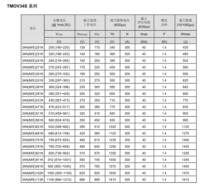 •压敏电压从(18V-1800V) •符合RoHS,Reach标准,无铅 •专利的集成热保护装置 - •旨在促进符合UL1449第3版SPD产品 •和促进符合IEC62368 ,IEC61643-331产品 •高峰值浪涌电流额定值高达40kA •波可焊 •标准引线形式和间距选项 •低泄漏 •-55°C至+ 85°C的工作温度范围