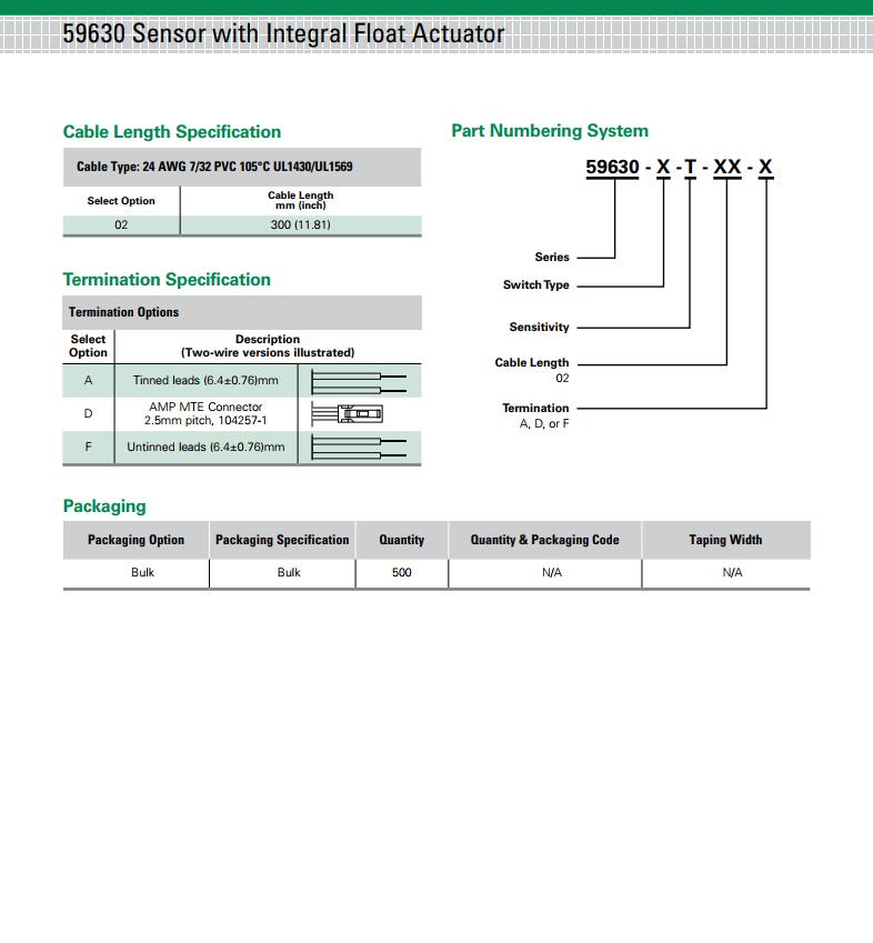关键字:59630 系列 - 带浮动驱动器的磁簧液位传感器